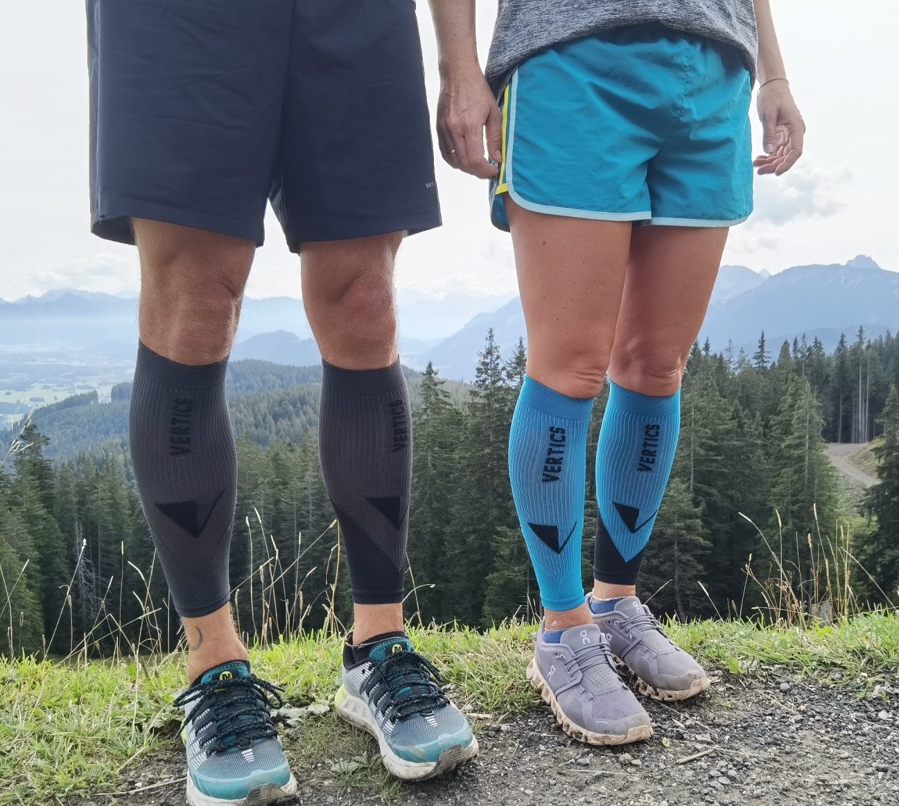 Das Tragen von VERTICS.Calfs Kompressionsstulpen an den Waden verhindert eine zu starke Oszillation der Muskeln bei Belastung und schont damit den Bewegungsapparat beim Laufen oder Wandern.